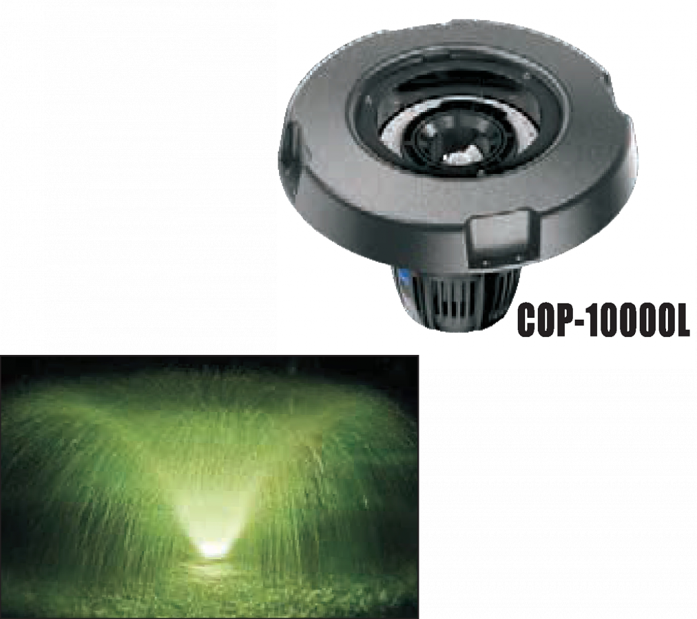 Плавающий фонтан-аэратор COP-10000L - простое, эффективное решение для обогащения кислородом воды в водоемах а подсветка добавит красоты и неповторимости водной картины в темное время суток. Он представляет собой плавающий плот с энергосберегающим насосом, производительностью 20000 л/час. Вода выбрасывается мощным насосом вверх, создается подобная фонтану эффектная водная картина на поверхности водоема. Принцип аэрации заключается в смешивании воздуха с водой в момент выброса множества брызг на поверхность водоема.