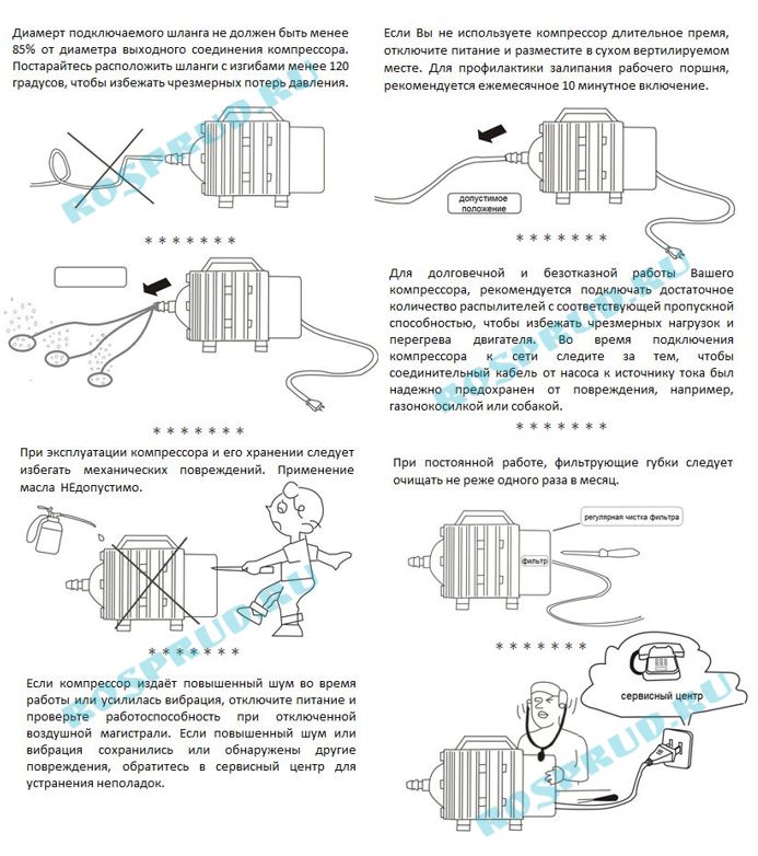 Компрессор может эксплуатироваться без выключения длительное время, при этом допускается некоторое нагревание корпуса прибора.
