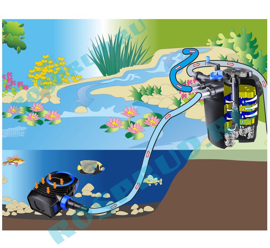 Напорные фильтры - идеальный вариант для водоемов с горками, ручьями и при создании многоуровневых водоемов. Могут устанавливаться ниже уровня воды, что решает проблему их декорирования. Благодаря напорным фильтрам, уже очищенная вода может подаваться выше установленного фильтра, например, на горки и водопады. Для очистки воды используется три компонента: фильтрующие маты различной зернистости, UV-лампа, убивающая вредные болезнетворные бактерии и снижающая степень цветения воды, биоблоки, на которых размножаются полезные бактерии. Наличие функции «ОБРАТНОЙ ПРОМЫВКИ» облегчает обслуживание фильтра