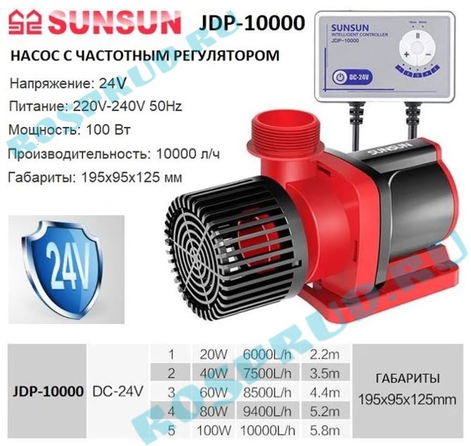 Насос для пруда низкого напряжения 24В с блоком управления регулирующим напор и мощность JDP-10000 SunSun